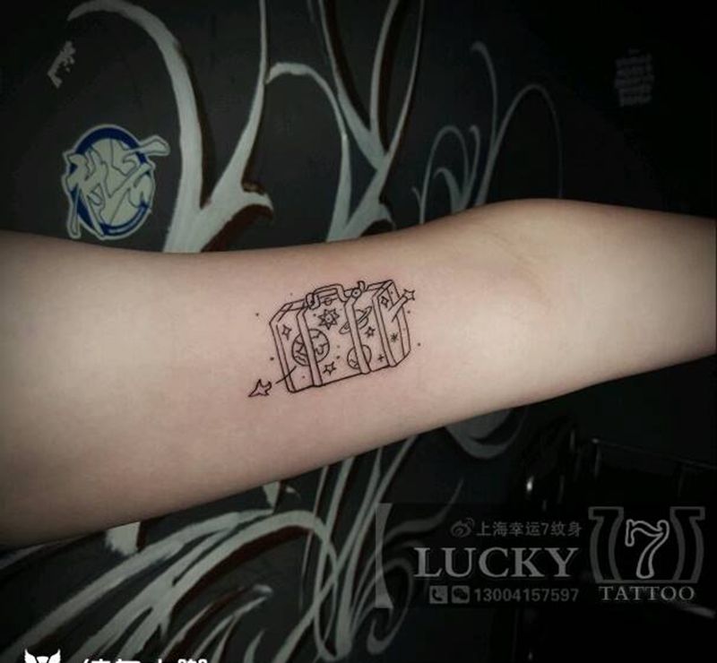 星空|旅行箱|幸运7纹身纹身图片_手臂植物图腾成品纹身图案