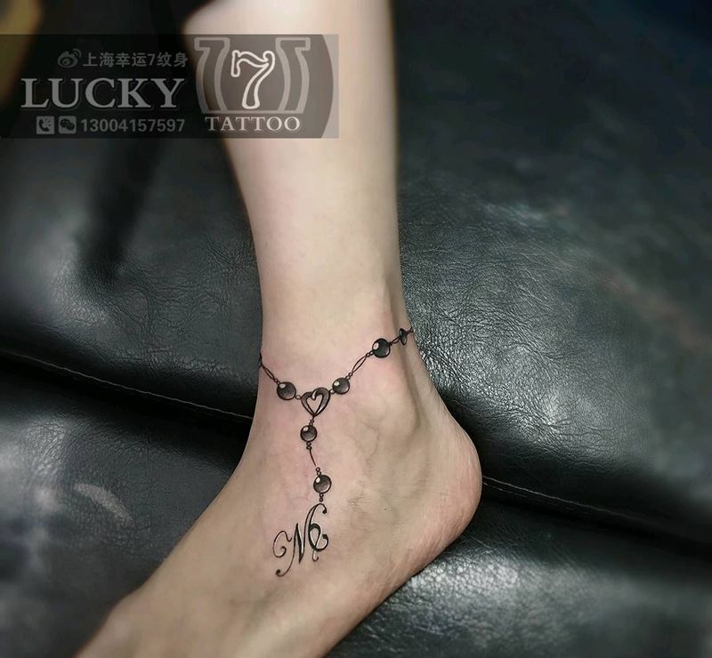 脚链|处女座|幸运7纹身纹身图片_清新成品纹身图案
