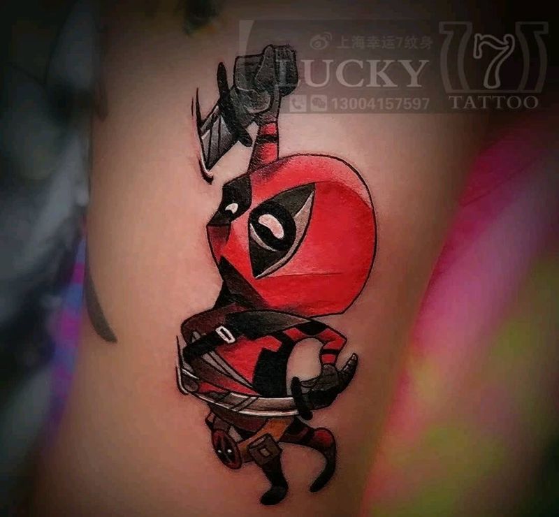 死侍|彩色|卡通|幸运7纹身纹身图片_手臂欧美卡通成品纹身图案