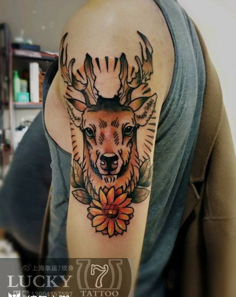 当前位置: 首页 >上海市纹身店-幸运7纹身Lucky7tattoo纹身图案>Newschool鹿头纹身纹身图片_手臂欧美动物彩色成品纹身图案