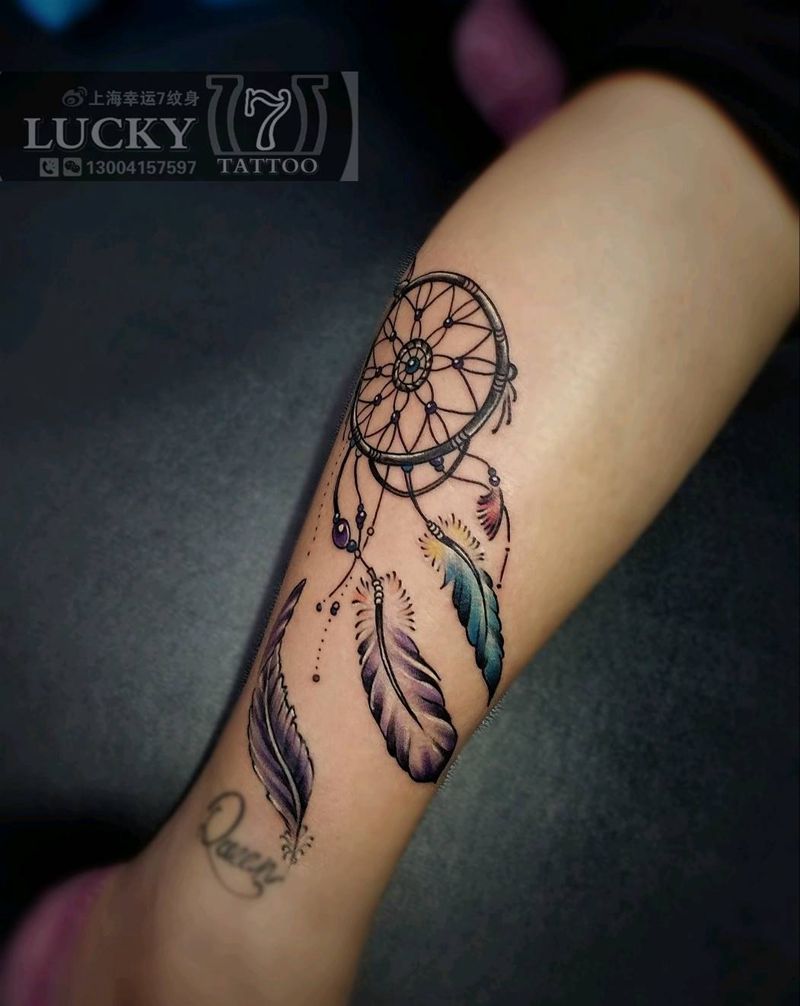 当前位置: 首页 >上海市纹身店-幸运7纹身Lucky7tattoo纹身图案>捕梦网|幸运7纹身纹身图片_腿部清新彩色成品纹身图案