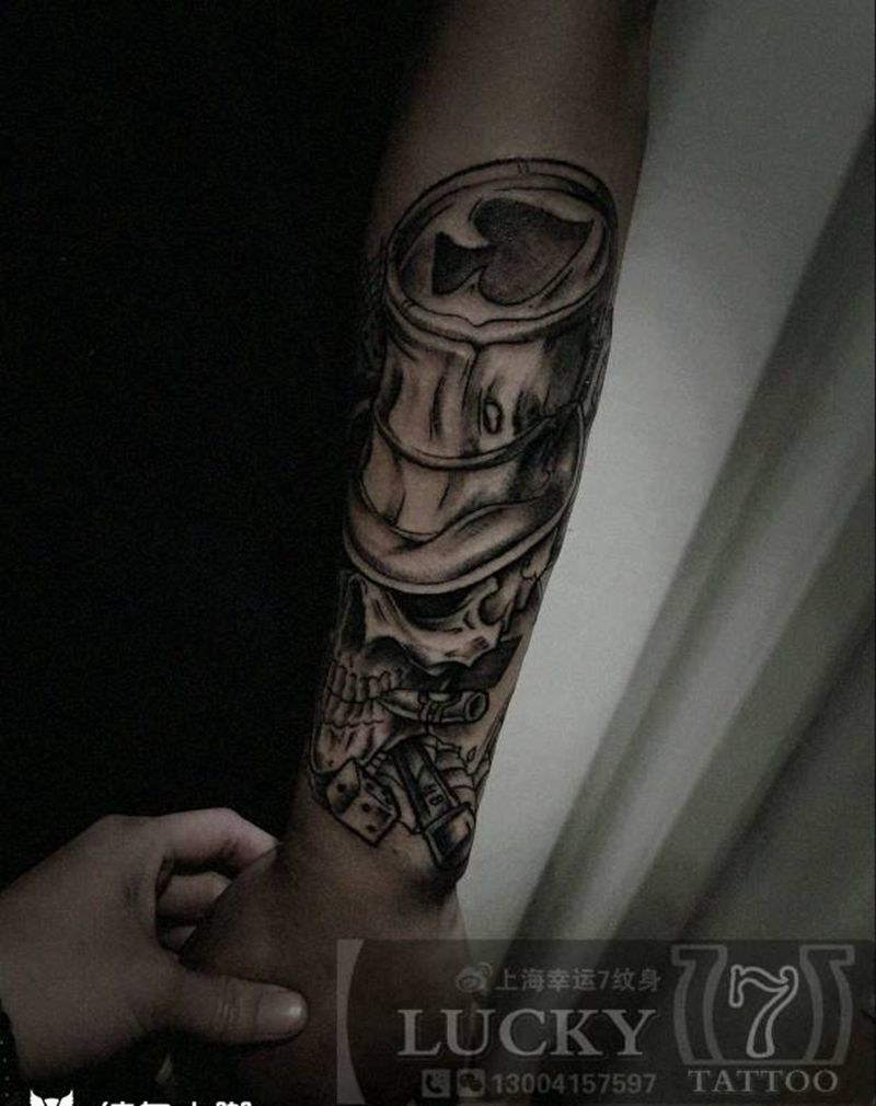 暗黑|骷髅|幸运7纹身纹身图片_手臂欧美暗黑成品纹身图案
