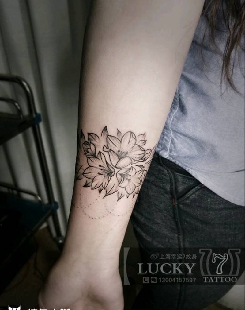 花卉|小清新|臂环|幸运7纹身纹身图片_植物成品手稿纹身图案