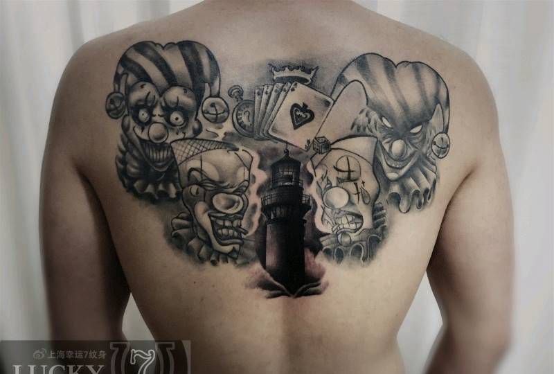 小丑|灯塔|修改|幸运7纹身纹身图片_欧美遮盖修改成品纹身图案