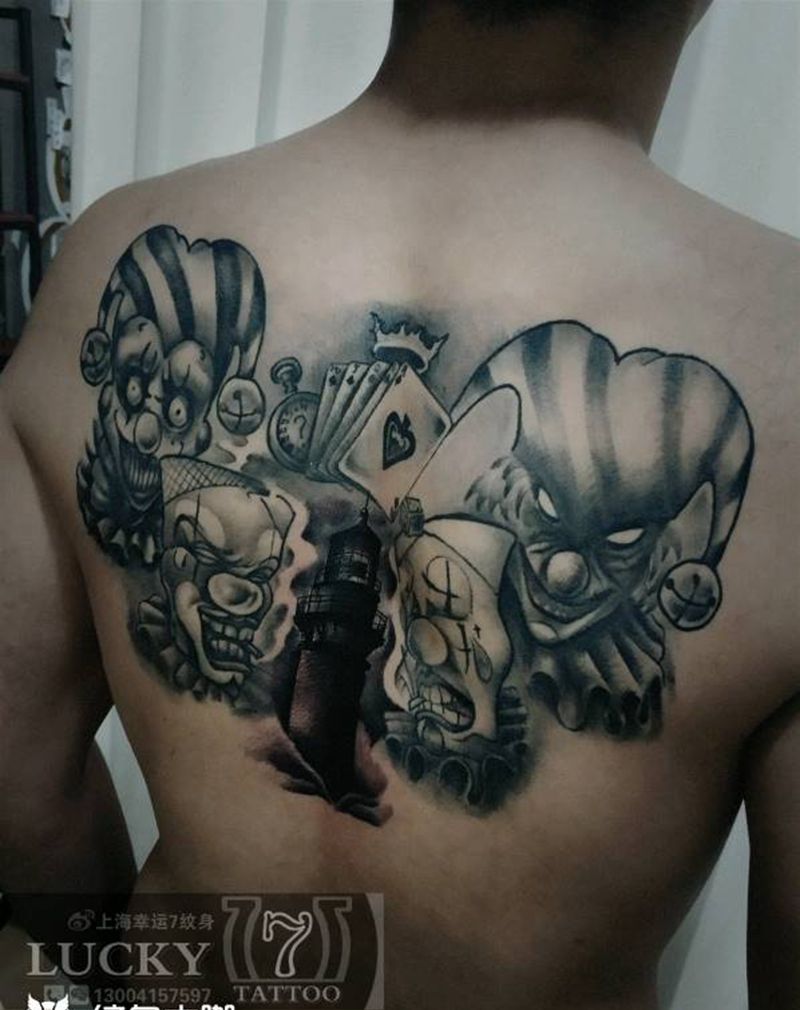 小丑|灯塔|修改|幸运7纹身纹身图片_欧美遮盖修改成品纹身图案