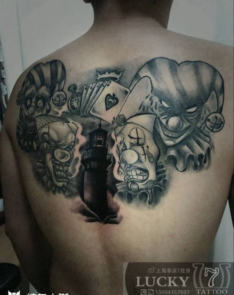 小丑|灯塔|修改|幸运7纹身纹身图片_欧美遮盖修改成品纹身图案