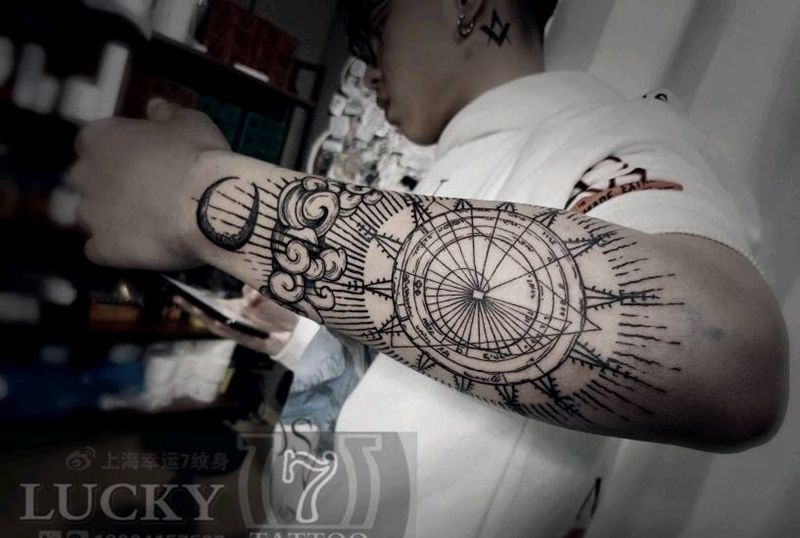 几何线条|幸运7纹身纹身图片_手臂几何成品纹身图案
