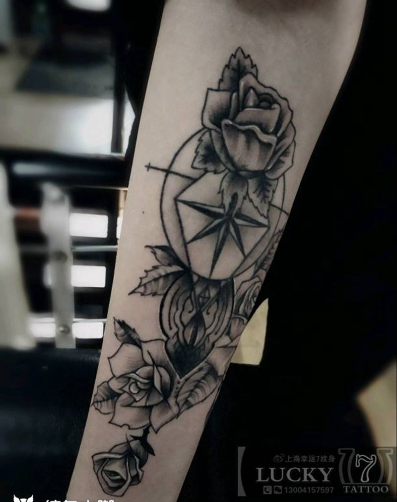 修改添加|玫瑰|幸运7纹身纹身图片_手臂清新植物成品纹身图案
