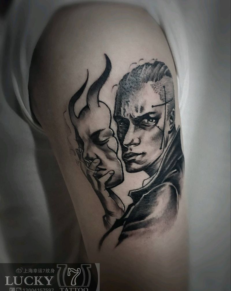 当前位置: 首页 >上海市纹身店-幸运7纹身Lucky7tattoo纹身图案>恶魔Boy|幸运7纹身纹身图片_手臂欧美人物暗黑成品纹身图案