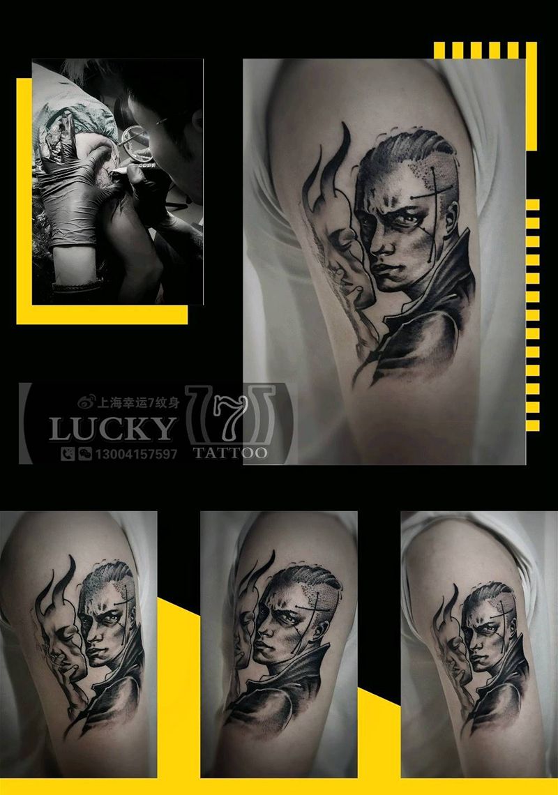 恶魔Boy|幸运7纹身纹身图片_手臂欧美人物暗黑成品纹身图案