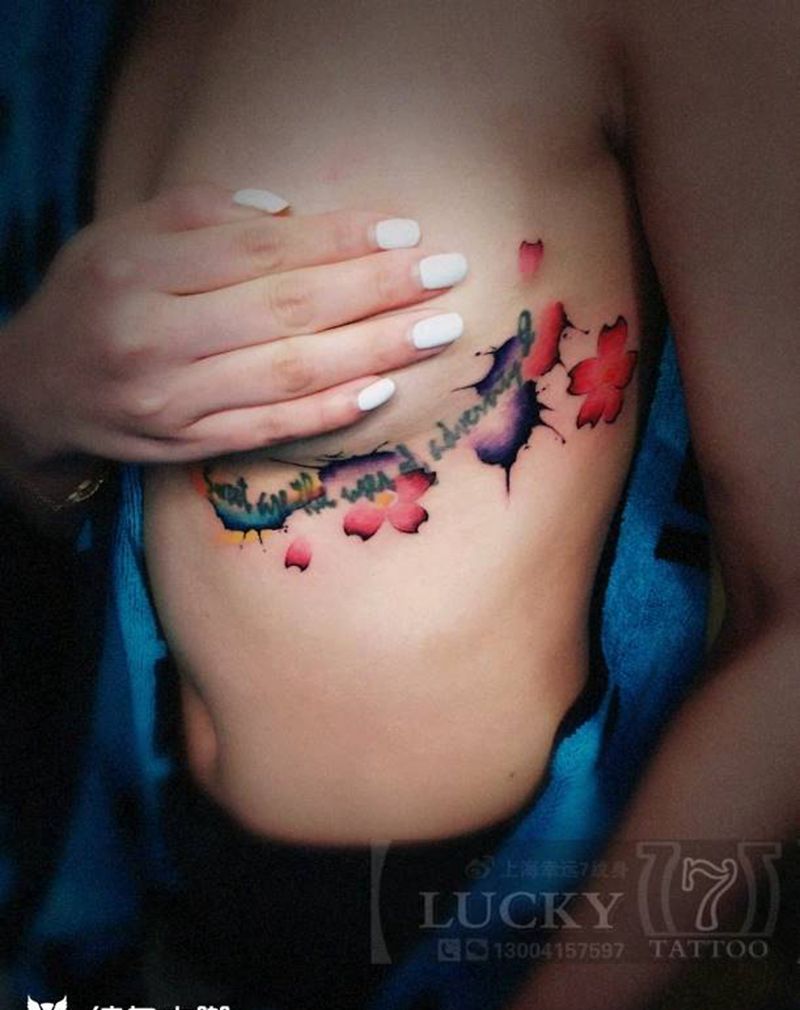 修改|泼墨|樱花|幸运7纹身纹身图片_胸部修改成品纹身图案