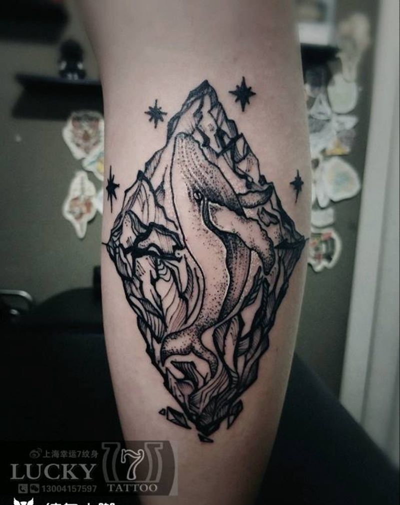 鲸鱼|点刺|幸运7纹身纹身图片_腿部清新动物点刺成品纹身图案