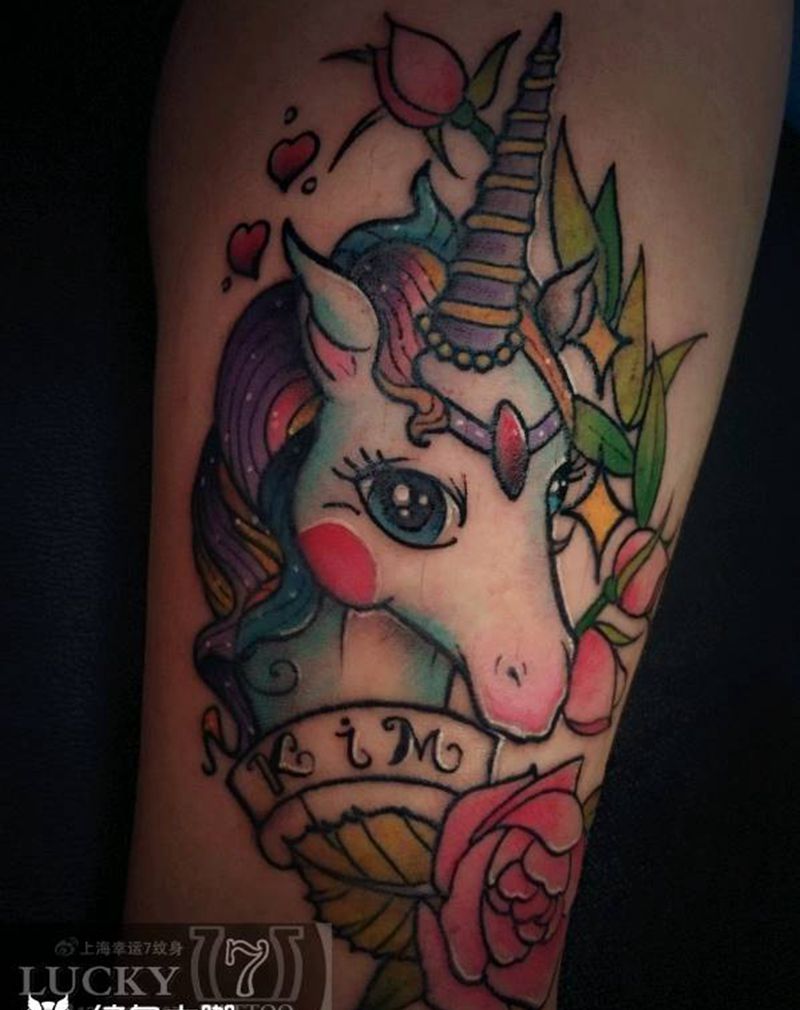 独角兽|幸运7纹身纹身图片_腿部动物原创成品纹身图案
