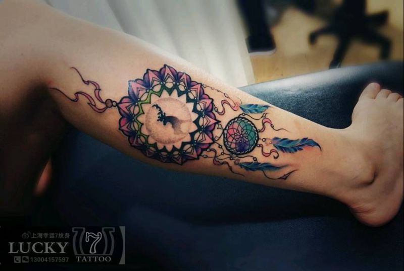 当前位置: 首页 >上海市纹身店-幸运7纹身Lucky7tattoo纹身图案>捕梦网|幸运7纹身纹身图片_腿部清新彩色成品纹身图案
