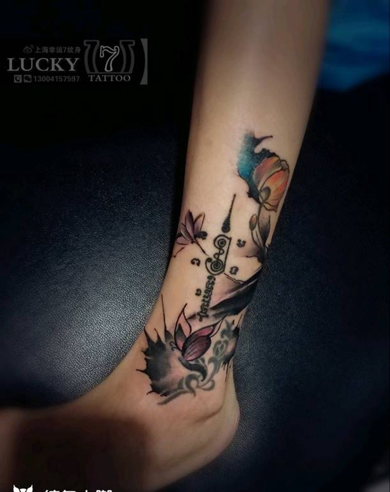 修改|泼墨衔接|幸运7纹身纹身图片_腿部国画修改泼墨成品纹身图案