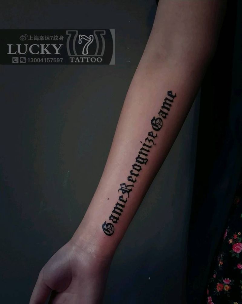 当前位置: 首页 >上海市纹身店-幸运7纹身Lucky7tattoo纹身图案>哥特字母|幸运7纹身纹身图片_手臂字符图腾成品纹身图案