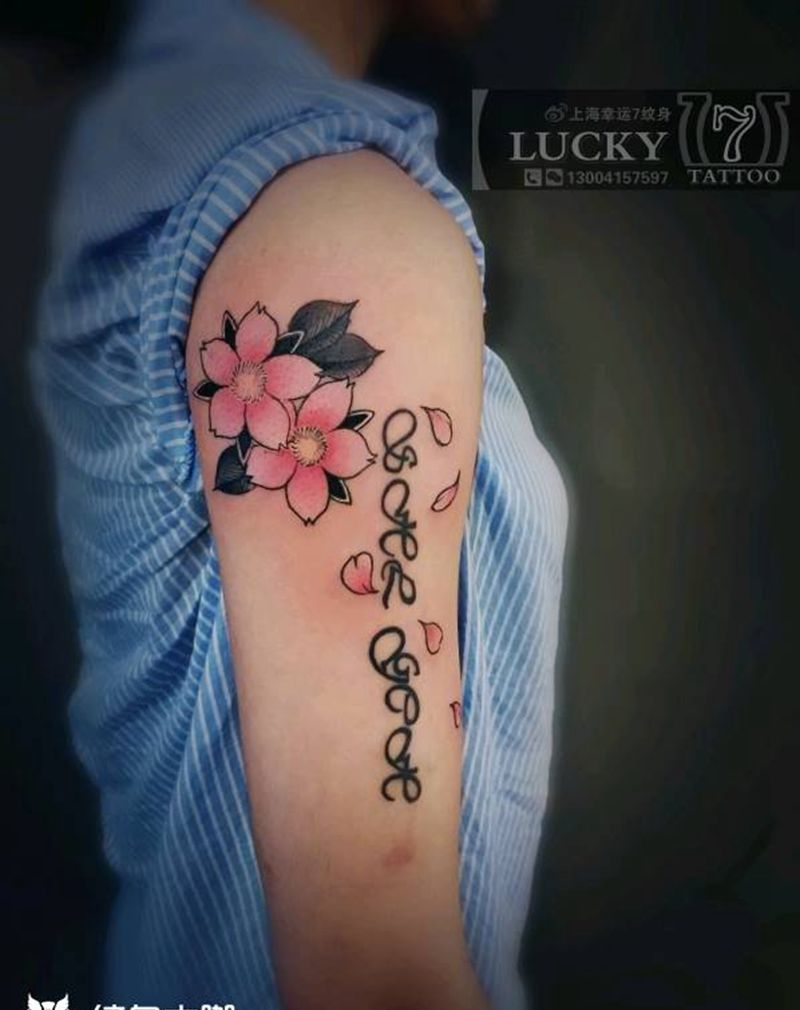 樱花|幸运7纹身纹身图片_手臂清新植物成品纹身图案