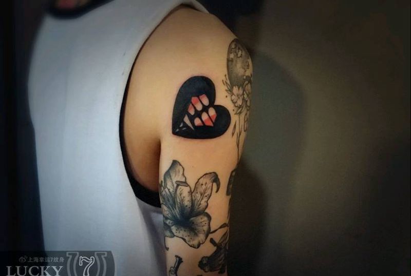 当前位置: 首页 >上海市纹身店-幸运7纹身Lucky7tattoo纹身图案>暗黑|心形|牙齿|幸运7纹身纹身图片_手臂图腾成品纹身图案
