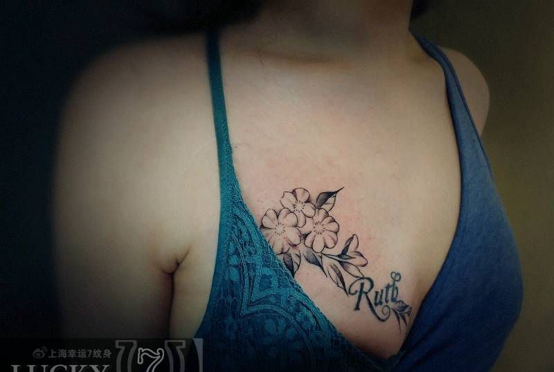 修改|小清新|花卉|幸运7纹身纹身图片_胸部清新植物修改成品纹身图案