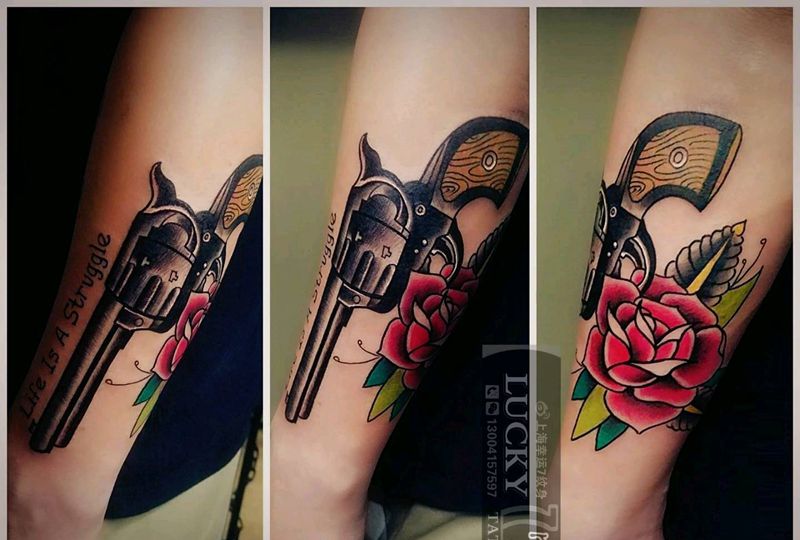 情侣|燕子|手枪|指南针纹身图片_手臂腿部欧美情侣成品纹身图案