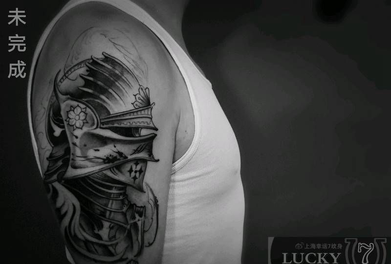 遮盖|头盔|幸运7纹身纹身图片_欧美黑灰遮盖纹身图案