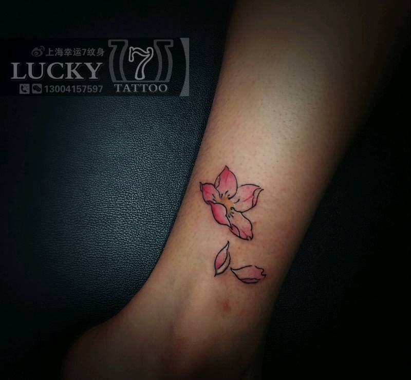 桃花|幸运7纹身纹身图片_手臂腿部清新植物彩色成品纹身图案