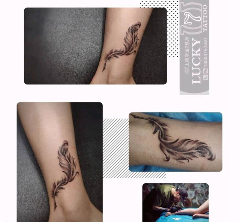 羽毛|幸运7纹身纹身图片_腿部清新纹身图案