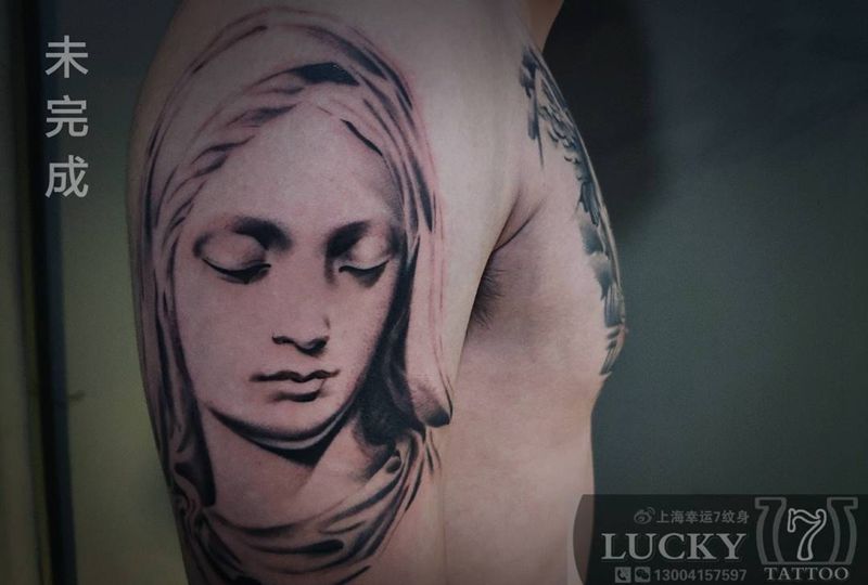 当前位置: 首页 >上海市纹身店-幸运7纹身Lucky7tattoo纹身图案>欧美|黑灰|天使|圣母|半胛纹身图片_手臂胸部欧美写实纹身图案