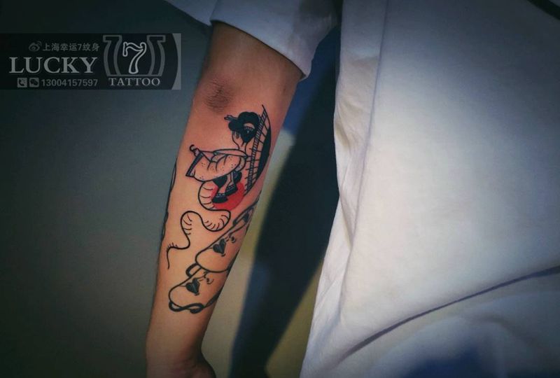 艺妓|幸运7纹身纹身图片_手臂日式纹身图案