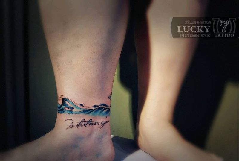 浪花|灯塔|脚环|幸运7纹身纹身图片_腿部彩色成品纹身图案