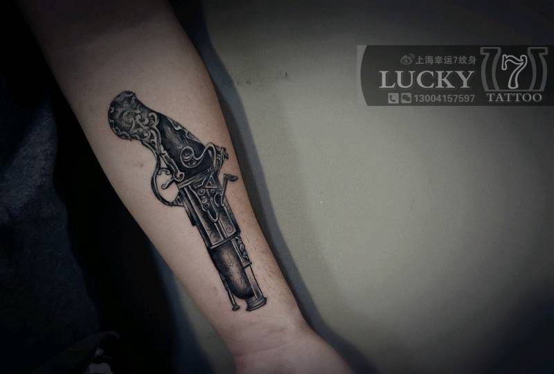 当前位置: 首页 >上海市纹身店-幸运7纹身Lucky7tattoo纹身图案>手枪|幸运7纹身纹身图片_手臂欧美写实成品纹身图案