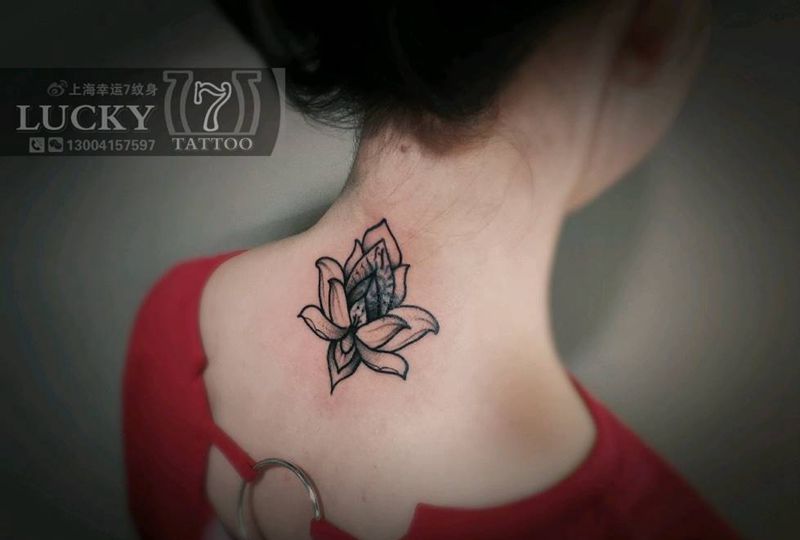 莲花|遮盖|幸运7纹身纹身图片_背部颈部遮盖小清新纹身图案