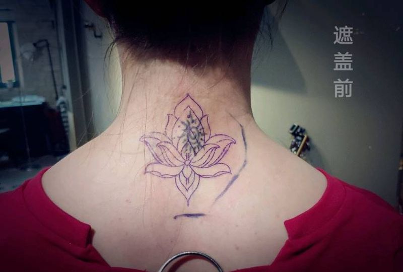 莲花|遮盖|幸运7纹身纹身图片_背部颈部遮盖小清新纹身图案