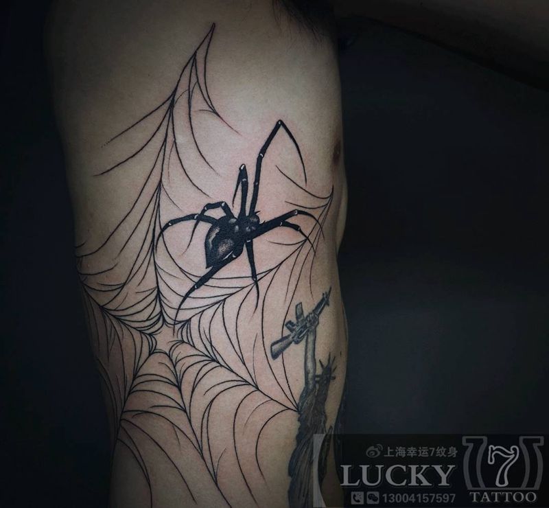 暗黑|蜘蛛|幸运7纹身纹身图片_肋骨暗黑纹身图案