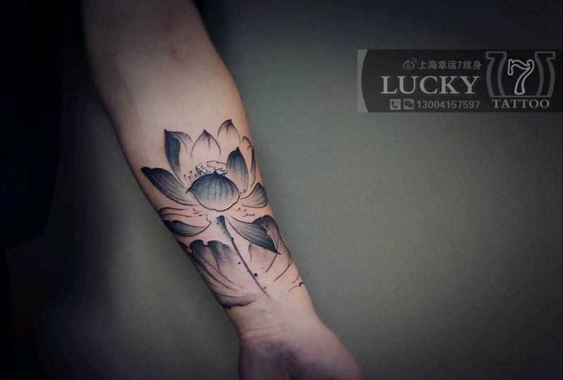 水墨莲花|幸运7纹身纹身图片_手臂水墨纹身图案