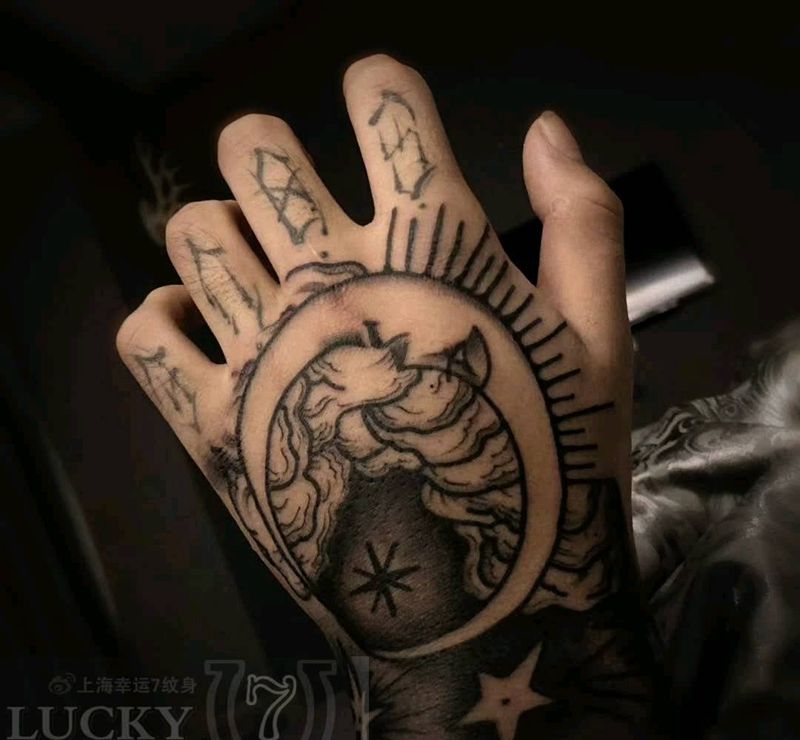 手背|月亮|幸运7纹身纹身图片_手部图腾纹身图案