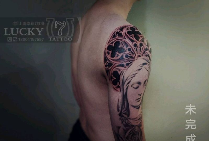 欧美半胛|写实|幸运7纹身纹身图片_手臂胸部欧美写实未完成纹身图案