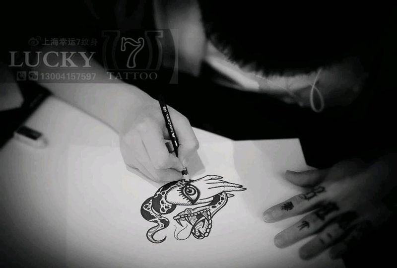 蛇|手|眼|幸运7纹身纹身图片_手臂Old School纹身图案