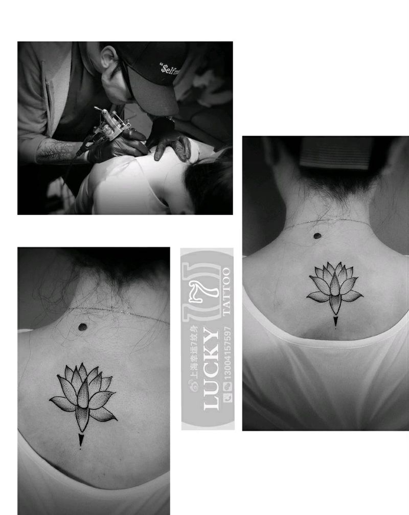 莲花|幸运7纹身纹身图片_背部点刺小清新纹身图案