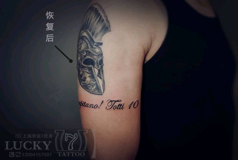 头盔恢复后|字母添加纹身图片_手臂欧美写实纹身图案
