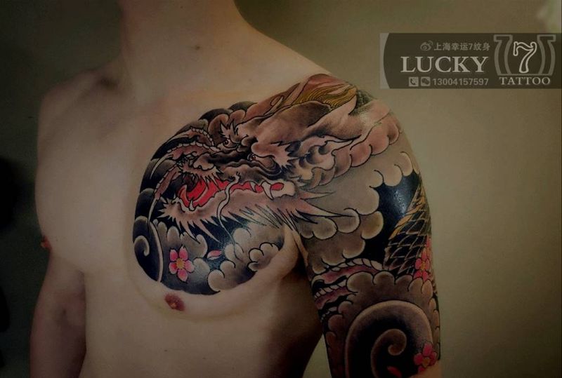 老传统盘龙半胛|幸运7纹身纹身图片_手臂胸部老传统纹身图案