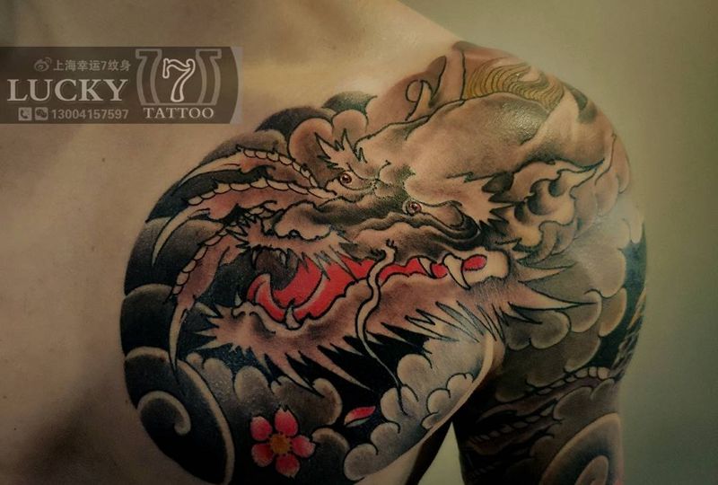 老传统盘龙半胛|幸运7纹身纹身图片_手臂胸部老传统纹身图案