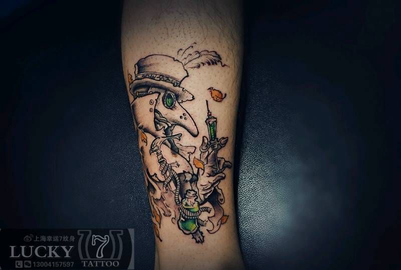 暗黑“鸟人”|幸运7纹身纹身图片_腿部暗黑纹身图案