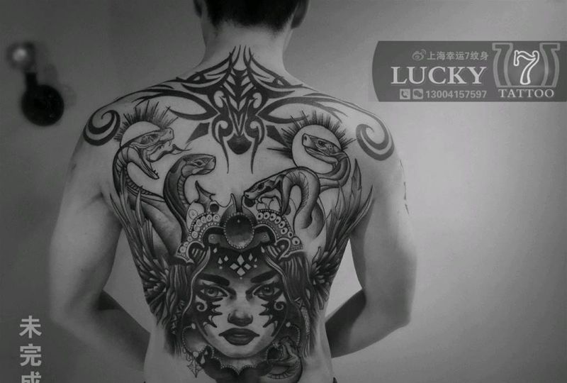 蛇女“美杜莎”|幸运7纹身纹身图片_背部New School未完成纹身图案