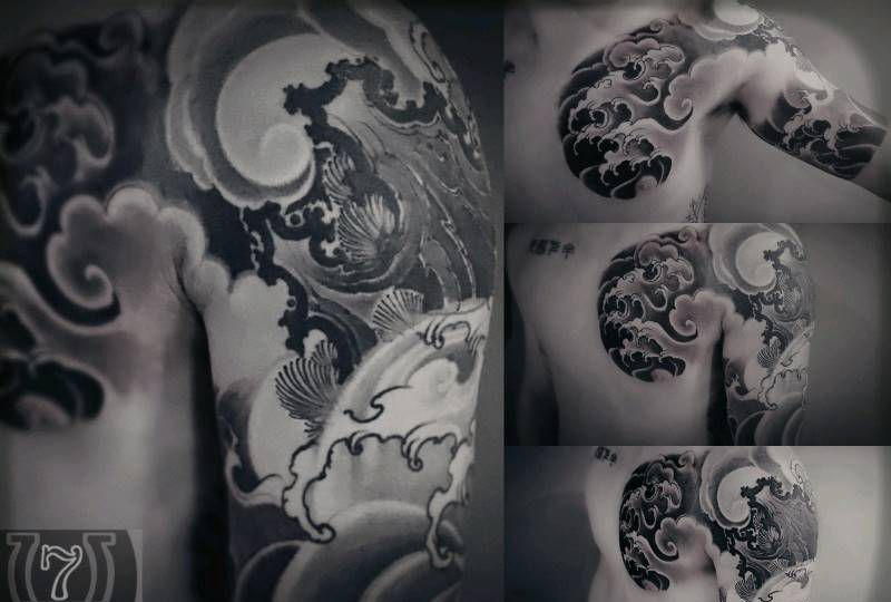 • 纹身吧推荐的披肩图腾半胛纹身图案作品展示