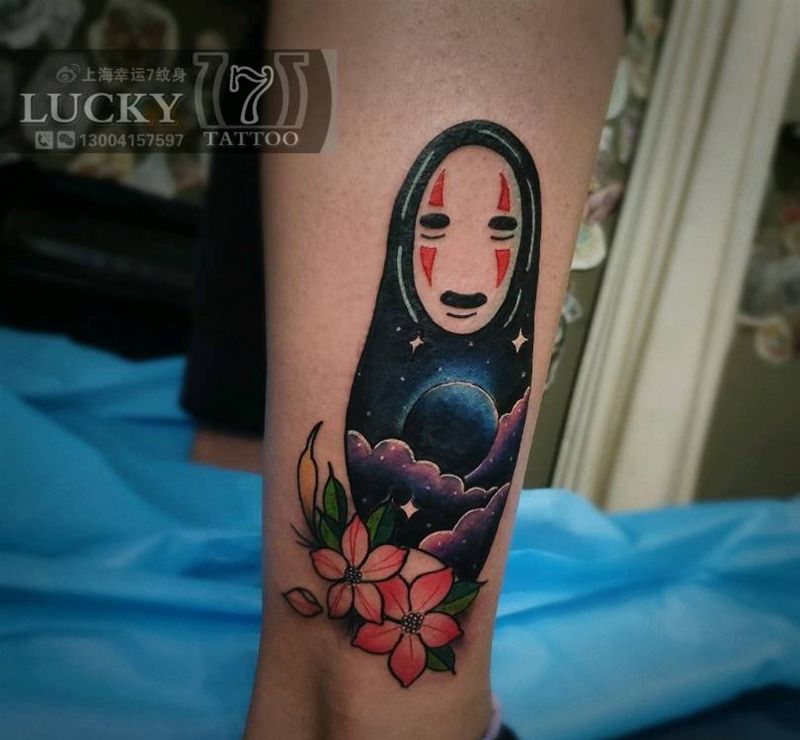 遮盖|“无脸男”|幸运7纹身纹身图片_腿部New School遮盖纹身图案