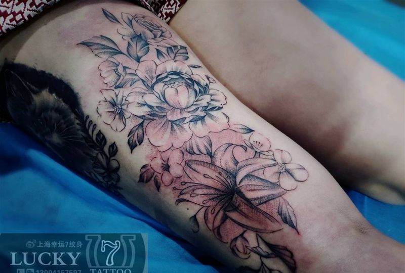 一组15张莲花纹身手