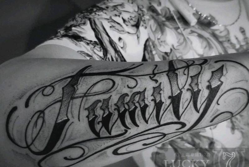 奇卡诺|幸运7纹身纹身图片_手臂花体字纹身图案
