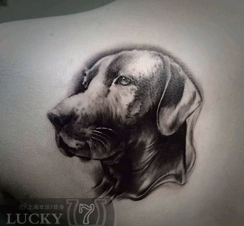 写实|黑灰狗头|幸运7纹身纹身图片_欧美写实肩背纹身图案