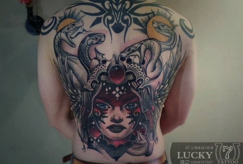 大背美杜莎|幸运7纹身纹身图片_背部New School纹身图案
